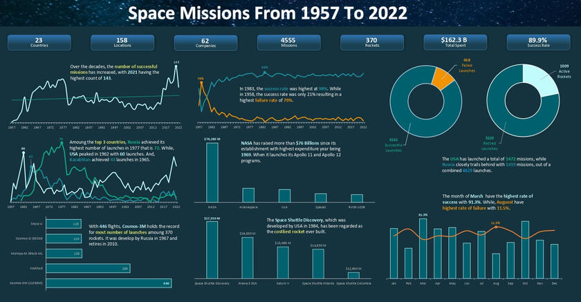 The report pays great attention to details and shares a bunch of important info. Here are some main points to take away:Successful missions have increased each year, hitting a high of 143 in 2021. The top three countries with the most missions are Russia, the USA, and Kazakhstan. The Cosmos-3M rocket holds a record for the most launches – a whopping 370 times before retiring in 2010. When it comes to spending, NASA takes the lead, investing a whopping $76 billion in space missions.